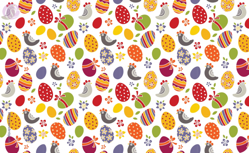 Fröhliche Ostern! Häschen, Hasen, Hühner, farbenfrohe Ostereier.