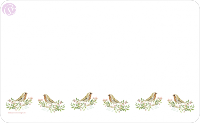 Frühlingshafte Brettchen mit Vögelchen auf Zweigen.